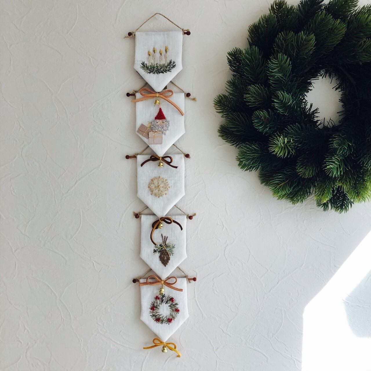 タペストリーにもなるクリスマス刺繍オーナメントです。