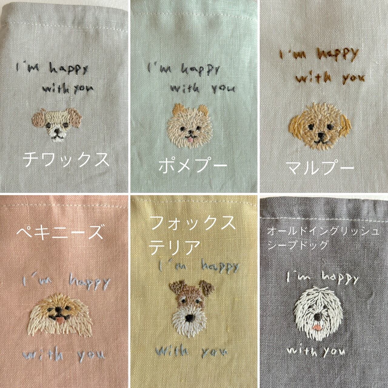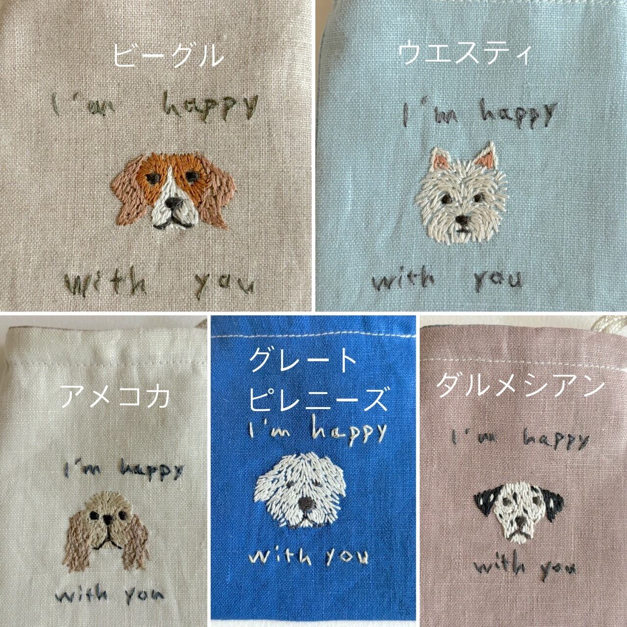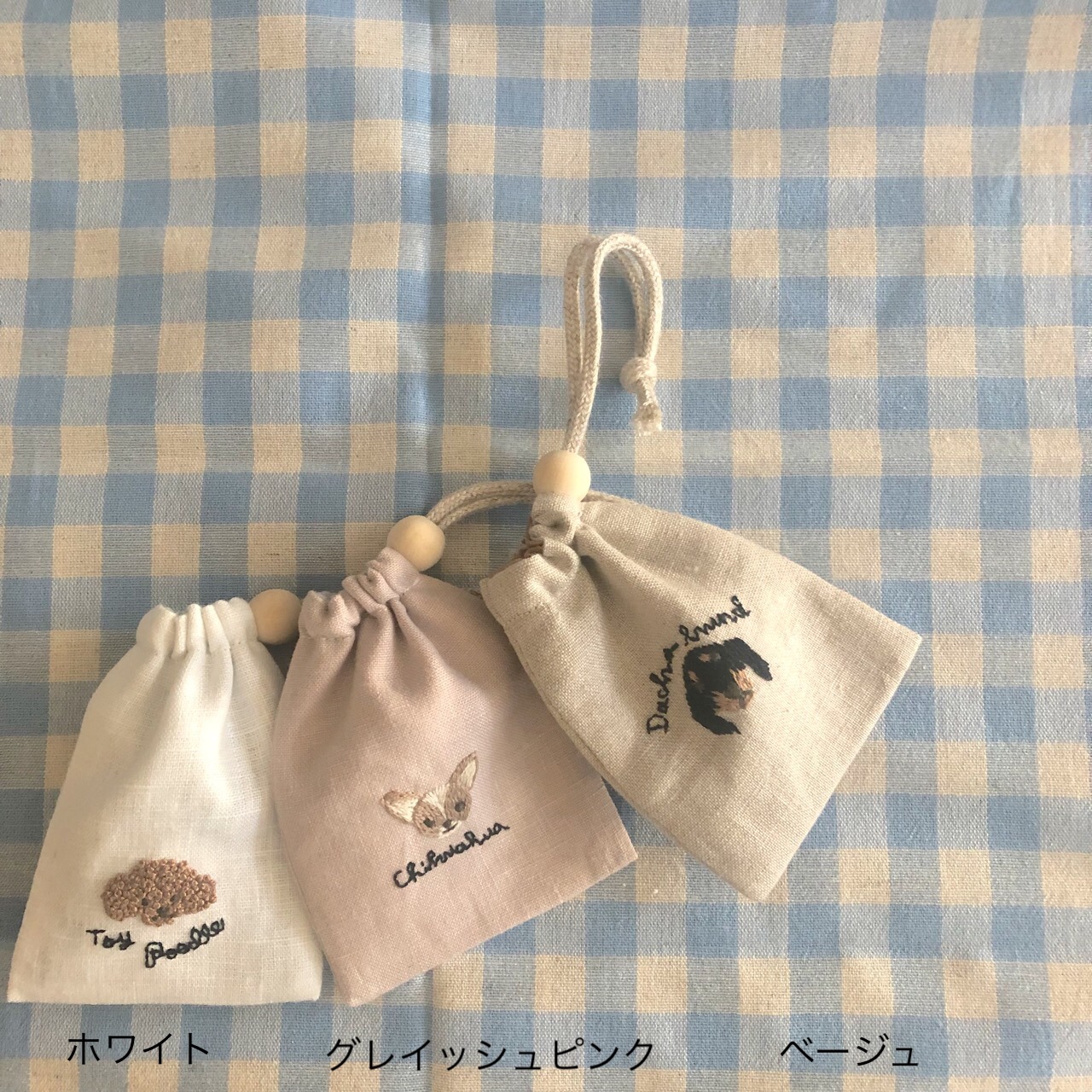 可愛い「うちの子」を刺繍して小さい巾着に仕立てます。