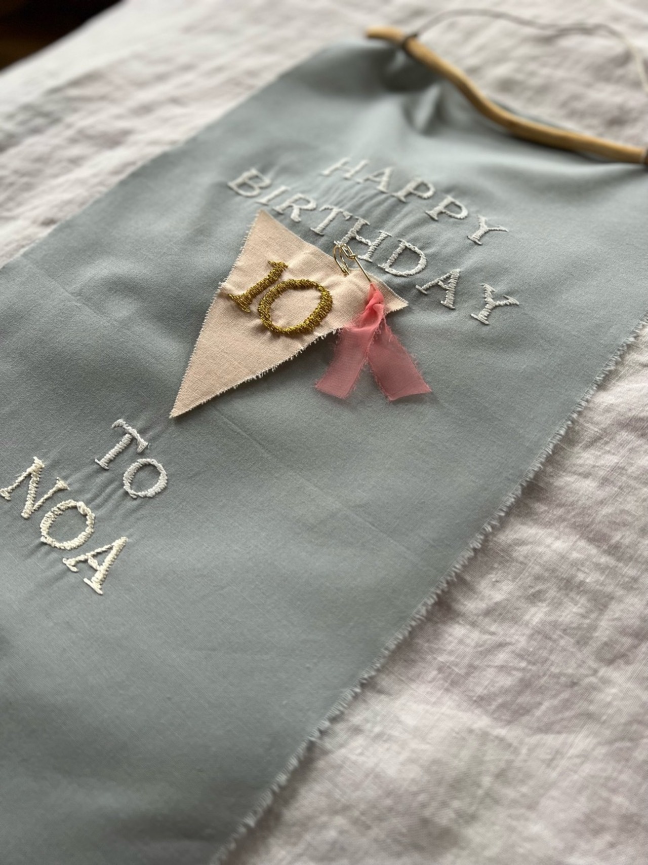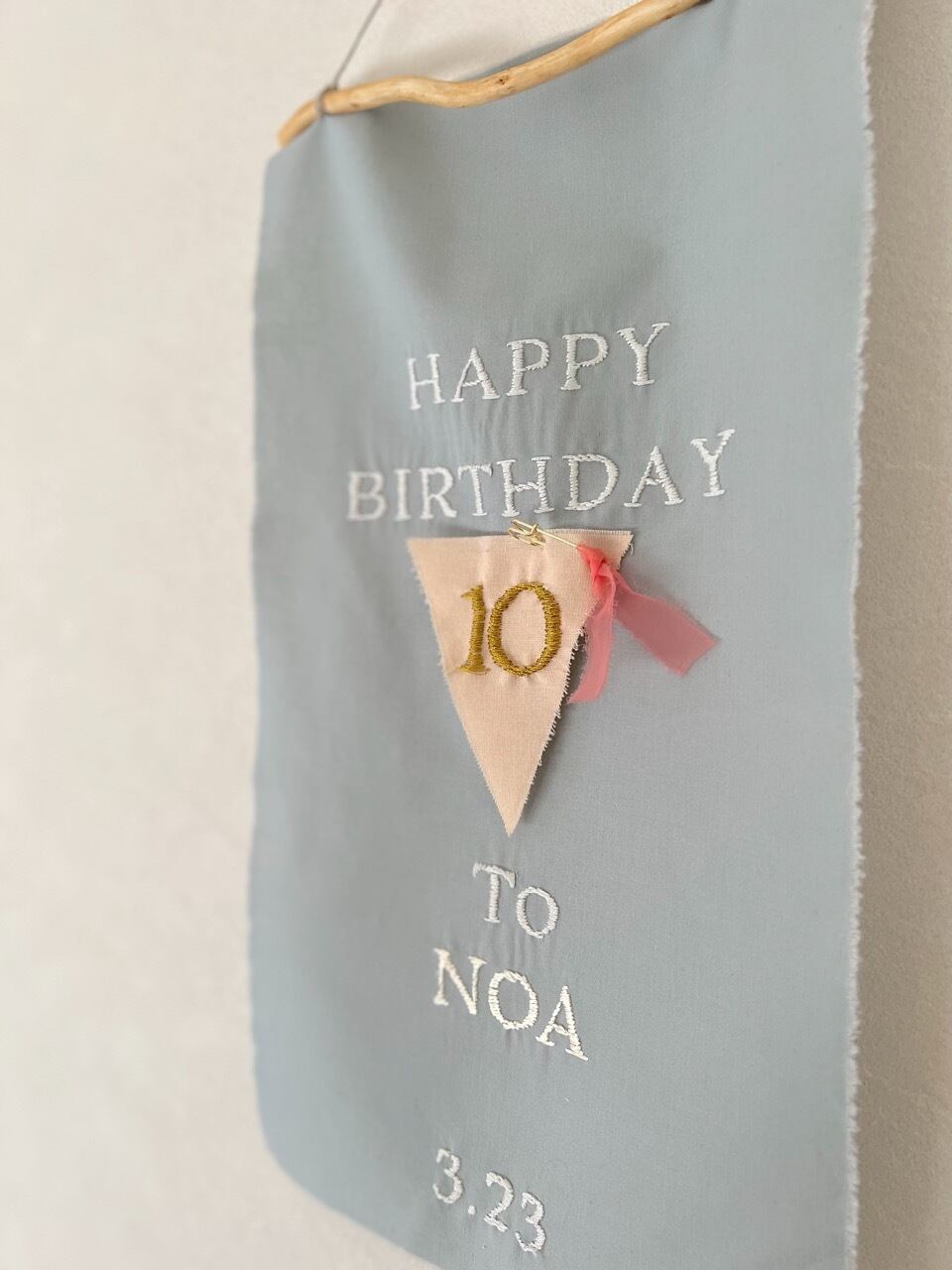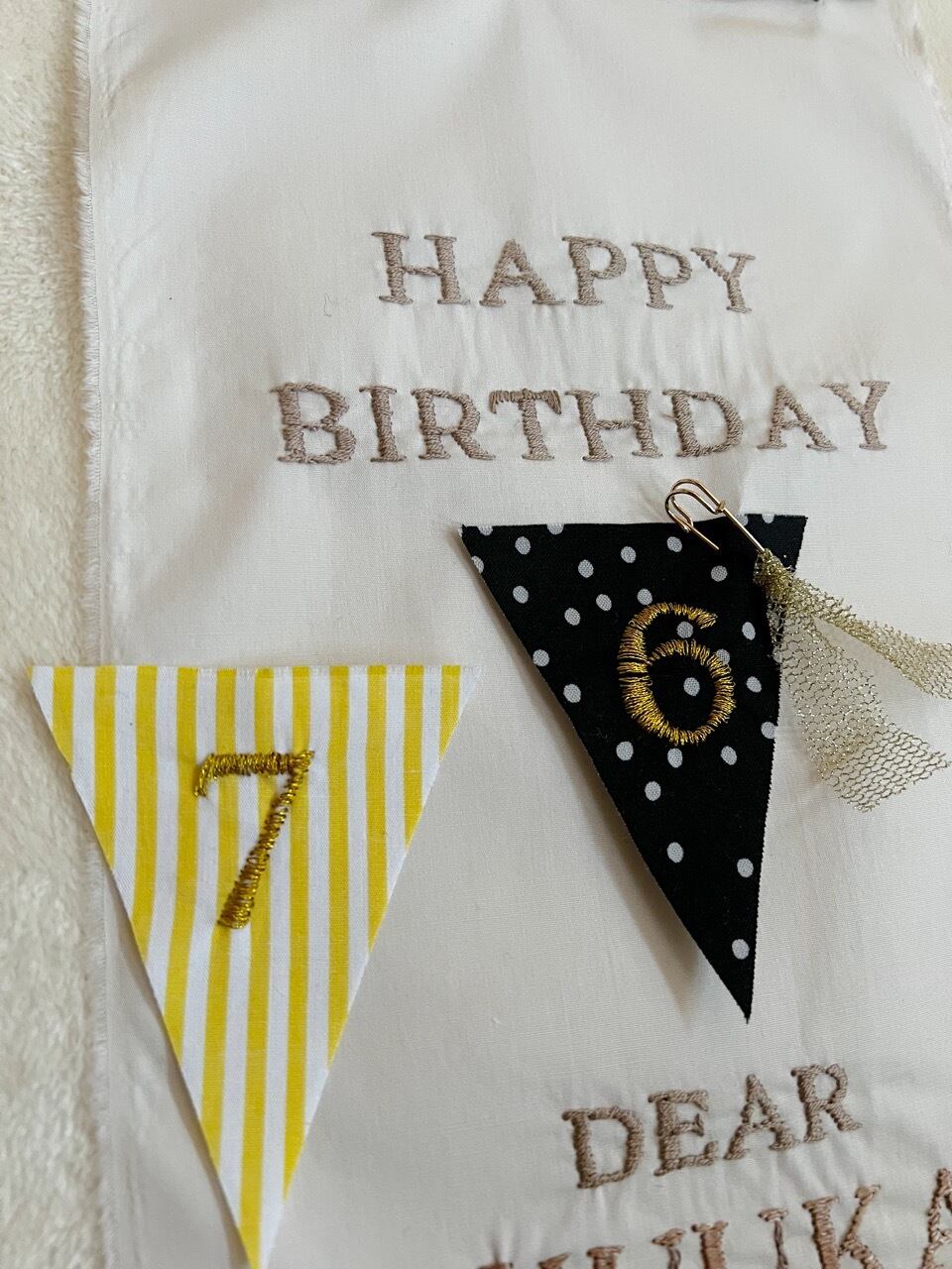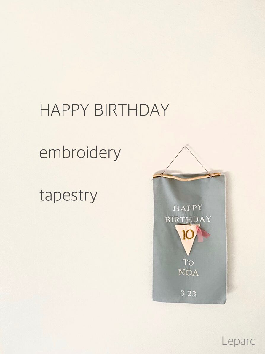お誕生日月に飾ってお祝いするHAPPY BIRTHDAY刺繍タペストリーです。