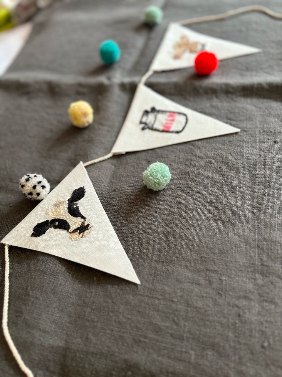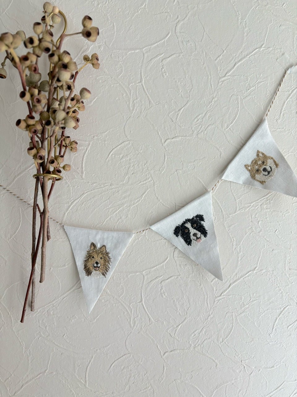 うちの子、お好きな動物を刺繍してガーランドをお作り致します。
