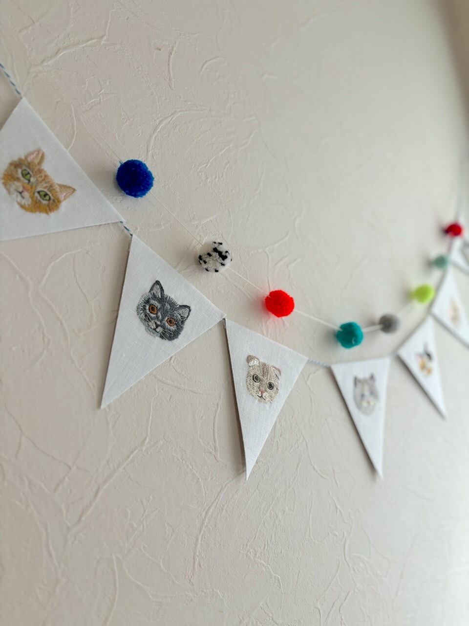 セミリアルな刺繍で見ても楽しい刺繍ガーランドです。