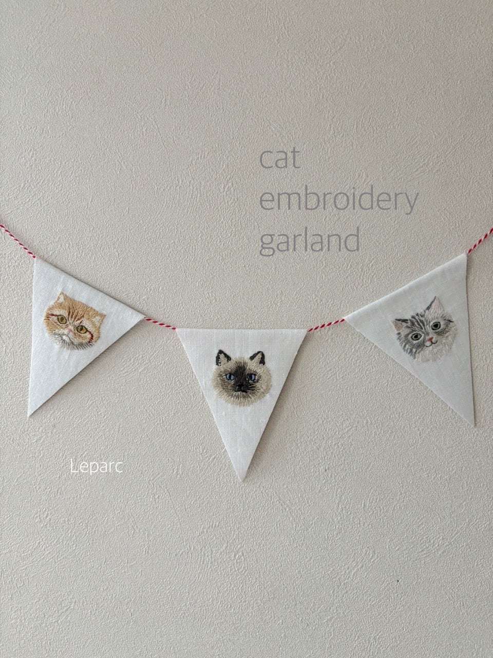 ラグドール、サイベリアン、エキゾチックの刺繍ガーランド。